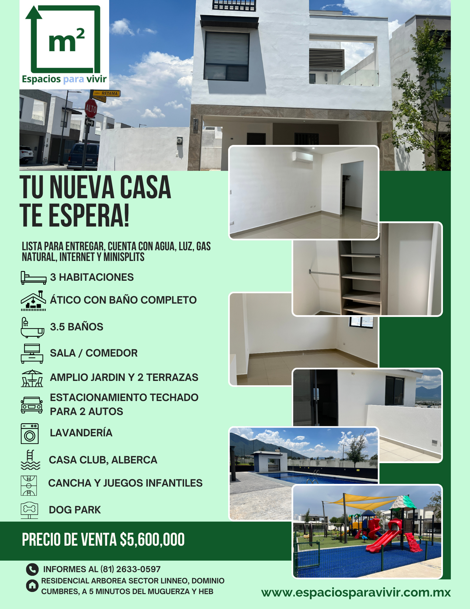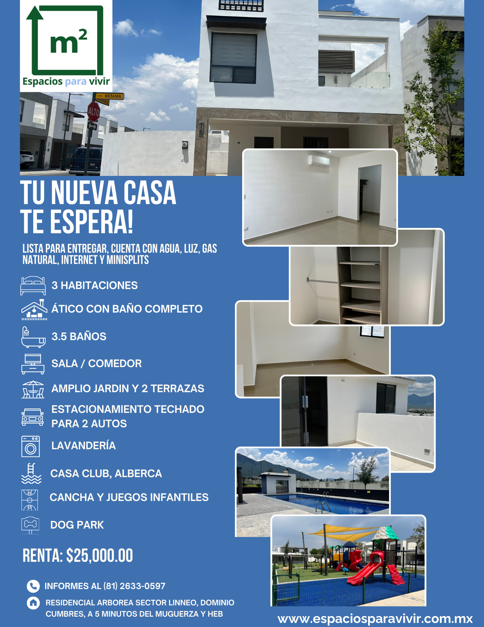 Hermosa casa de tres niveles ubicada en Dominio Cumbres, una de las zonas de mayor crecimiento y más alta plusvalía.